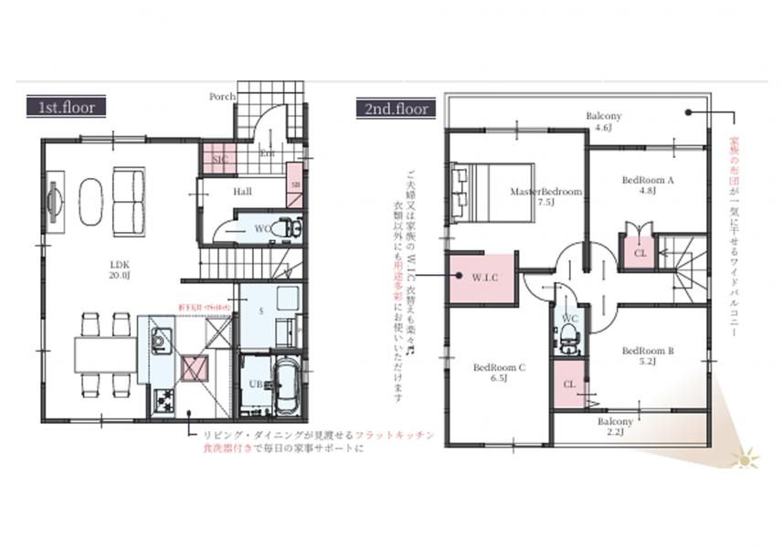 | 間取り / 詳細 | 4LDK LDK20帖 洋室7.5帖、6.5帖、5.2帖、4.8帖 | ||